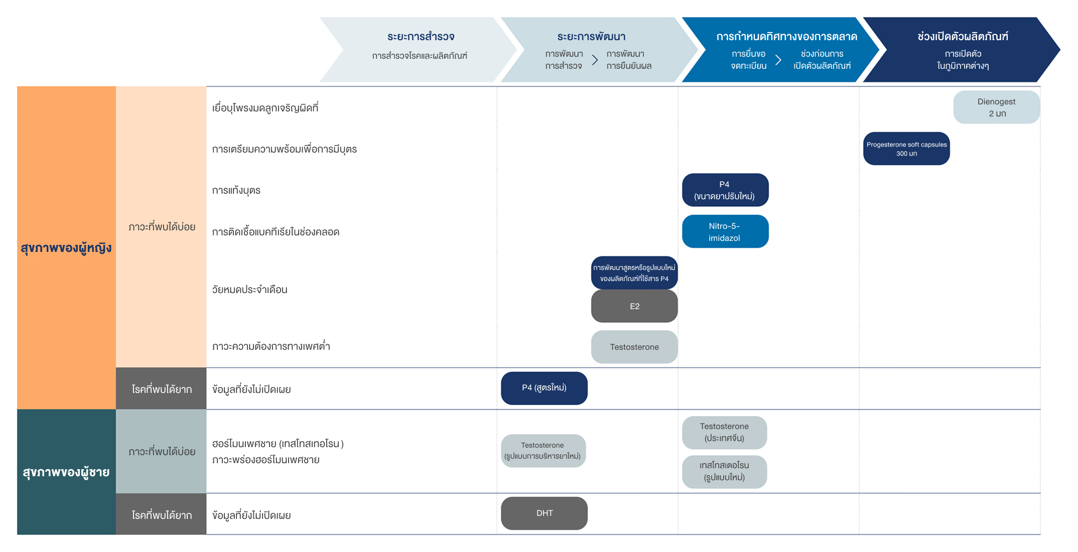 เรายังคงมุ่งมั่นสร้างความก้าวหน้าในฐานะผู้บุกเบิกฮอร์โมนเพื่อสุขภาพ เราไม่หยุดยั้งที่จะพัฒนาผลิตภัณฑ์ใหม่ ๆ อย่างต่อเนื่องในสาขาสูติศาสตร์ และนรีเวชวิทยา
